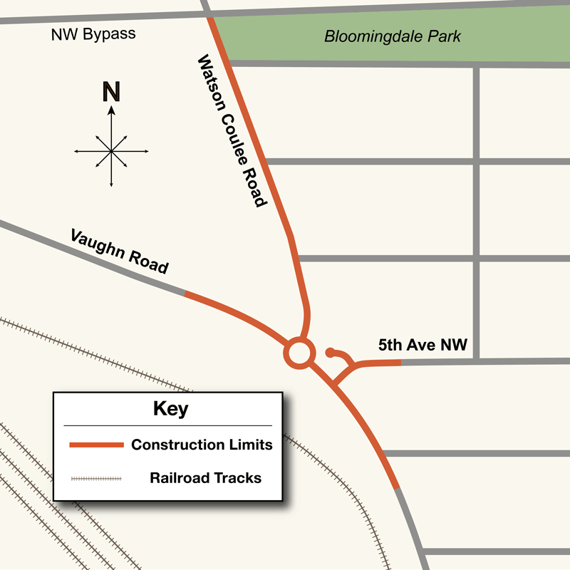"The City of Great Falls has selected a roundabout for the intersection of Watson Coulee, Vaughn Road, and 5th Ave NW to plan for future growth and continue executing the long-range transportation plan to keep Great Falls moving forward. A roundabout at this intersection allows for greater functionality and flexibility, which not only helps cement this area as a gateway to Great Falls but also simplifies a complex intersection before problems develop," – Jim Wingerter, MDT Great Falls District Administrator.